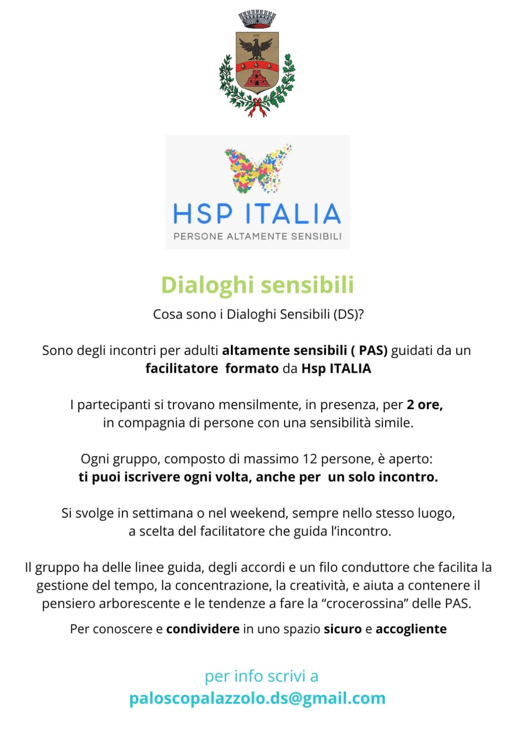 🌱I Dialoghi Sensibili sono incontri di gruppo per Persone Altamente Sensibili (PAS) ideati come spazi di scambio, ascolto e condivisione tra persone che vivono con una sensibilità più intensa rispetto alla media. In pratica sono momenti in cui chi condivide questo tratto di personalità può incontrarsi in un contesto sicuro e non giudicante, esprimersi e sentirsi capito.