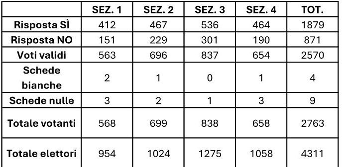 Esito relativo al referendum, avente il seguente quesito:
